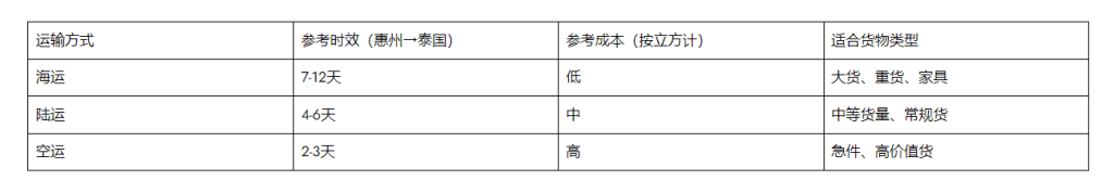 - 属地化服务:惠州区域上门提货,泰国派送到门。